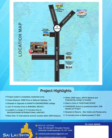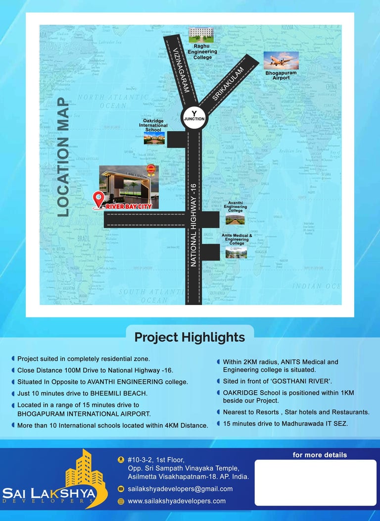 Office: Opp Sampath Vinayaka Temple,                                              CBM Compound, Ram Nagar,                                                Visakhapatnam,                                                                            Andhra Pradesh                                                                            530003                                                                                                          Email: sailakshyadevelopers@gmail.com